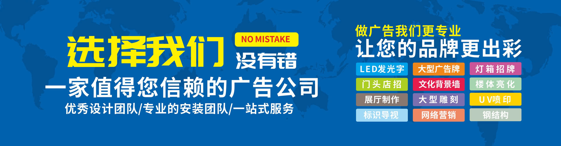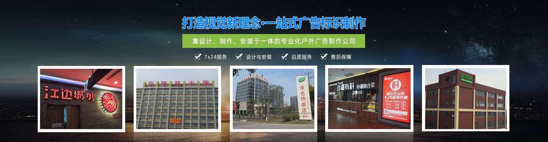 集户外广告设计、制作、安装、售后于一体的现代户外广告企业,连锁酒店、商场招牌设计、发光字制作服务商,楼盘户外广告标识标牌导向系统服务合作商