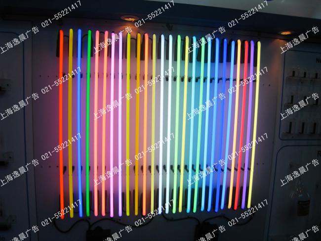 霓虹灯是由玻璃管制成,经过烧制,玻璃管能弯曲成任意形状,具有极大的灵活性,通过选择不同类型的管子并充入不同的惰性气体,霓虹灯能得到五彩缤纷、多种颜色的光。