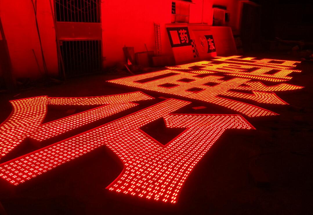 冲孔距离是2.5cm,3cm是常见的,就是一个孔与一个孔的距离是2.5cm,或者是3cm,冲孔发光字的是一个个的小孔的字。冲孔的大小有9mm 12mm ,9mm大小的就是用9mm的光源,12mm的就是使用相关匹配的光源。冲孔发光字一般一个平方安装的光源数量在300-350颗不等,有些字的笔画比较的粗,例如大黑体,采用的光源,就是要比行楷隶书要多一点。经常听到很多的同行说,这套字接的不挣钱,那套字接的还好一点点,这主要是发光字制作的成本不是一层不变的,还有就是字体,颜色,这些都是要考虑的。不同的字体制作的成本是不一样的,有些字体可能便宜一点也可能做,但是有些字体是做不了的,有些字体还需要加钱才能够够成本给予制作。冲孔发光字的制作孔距,采用的光源,这些都是比较的灵活的,可以调整的。价格与要求,以及材质有光。具体的电议或者是面议。